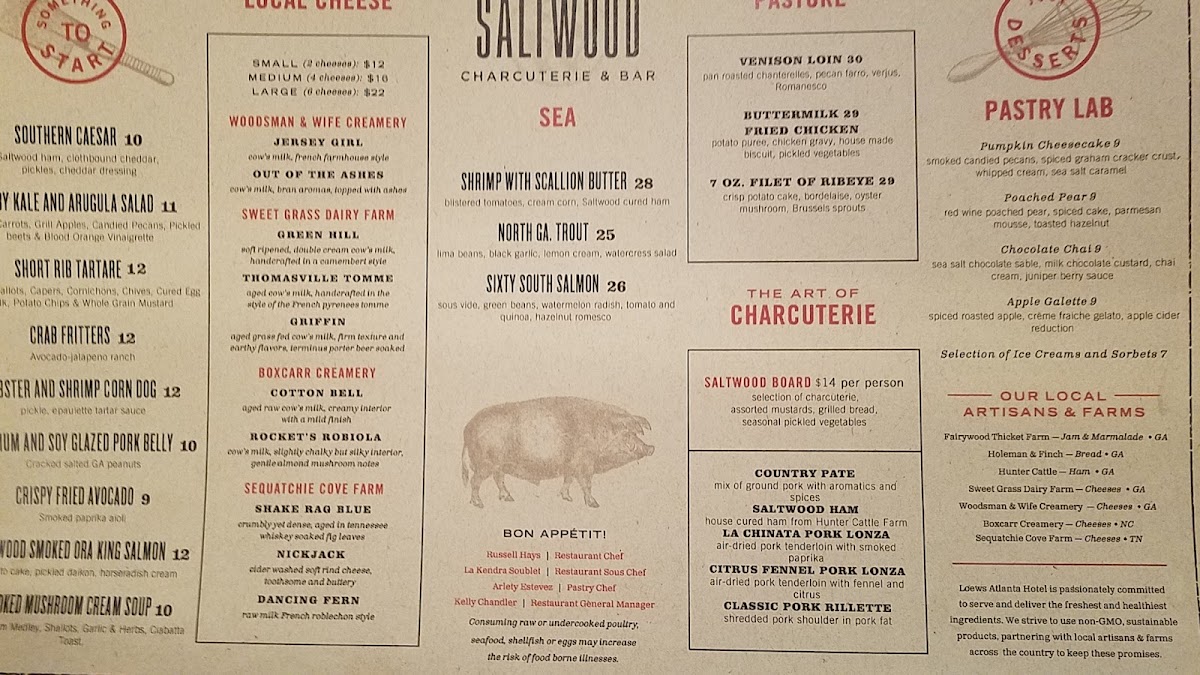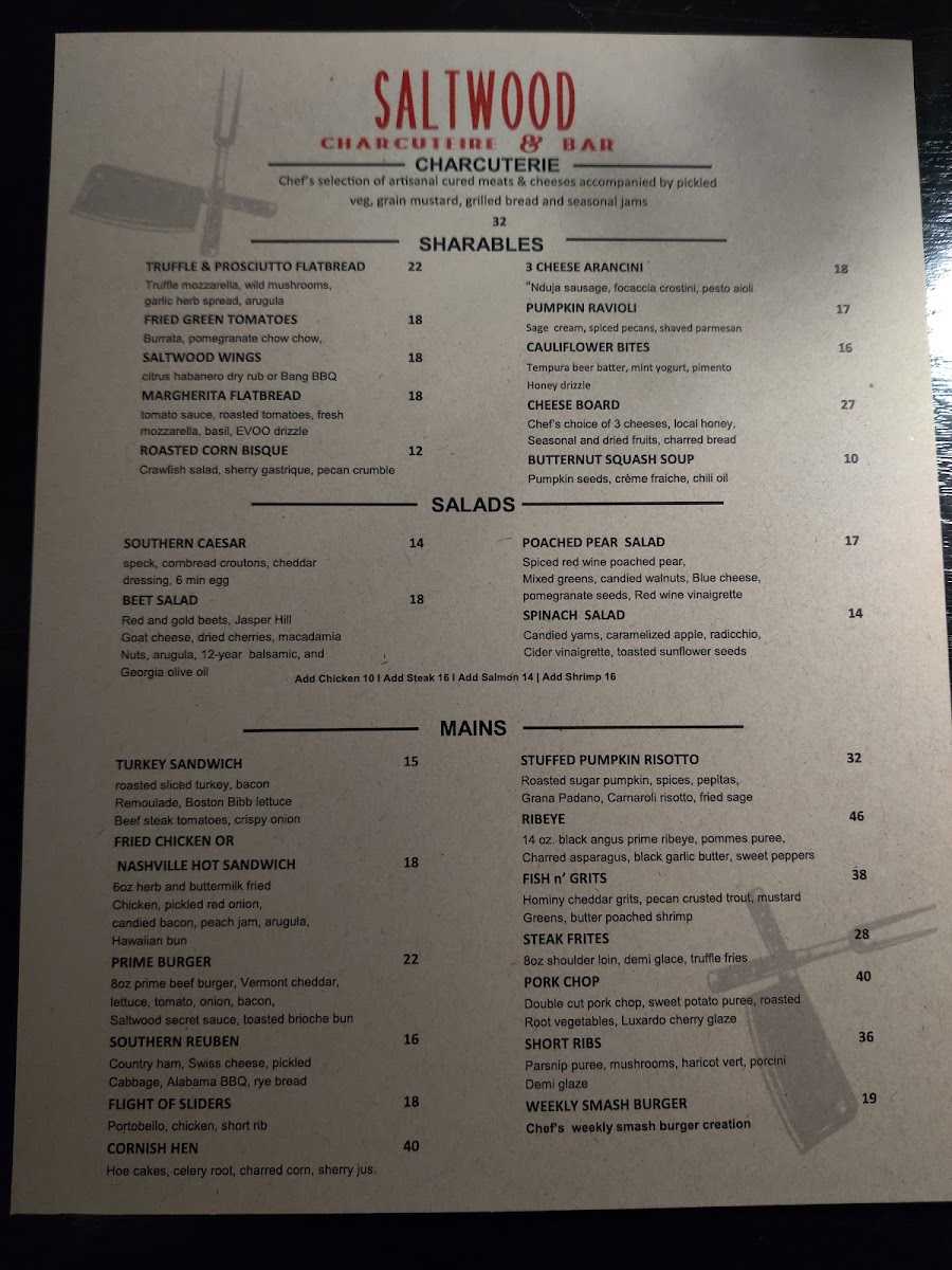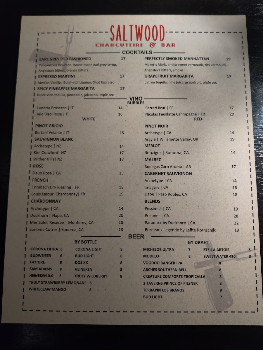 Welcome to Saltwood Charcuterie & Bar, a culinary gem nestled in the heart of Atlanta at 1065 Peachtree St NE. This upscale establishment offers a delightful fusion of flavors and an inviting atmosphere, making it perfect for both business and casual dining. With a menu that features everything from exquisitely crafted charcuterie boards to succulent Wagyu sliders and innovative duck confit salads, every dish is a masterpiece.